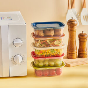 5-piece food storage container set – BPA free, leak proof, quick locking lid, with ventilation holes, microwave usable, space saving design – suitable for Valentine’s Day bento boxes, picnic parties, kitchen storage, offices, schools, picnics, camping, and outdoor camping