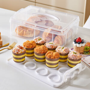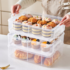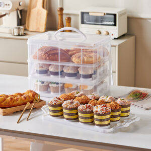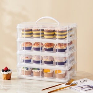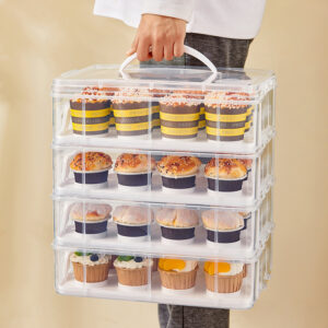 3-layer/4-layer transparent plastic cupcake holder can accommodate 36/48 cupcakes, with lid and handle, portable cupcake holder, stackable cupcake storage container, easy to carry trough tray, large plastic storage box, versatile, reusable