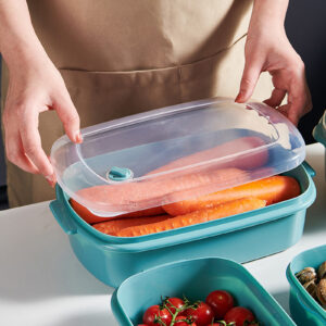 -3-piece food storage container set – BPA free, leak proof, quick locking lid, with ventilation holes, microwave usable, space saving design – suitable for Valentine’s Day bento boxes, picnic parties, kitchen storage, offices, schools, picnics, camping, and outdoor camping